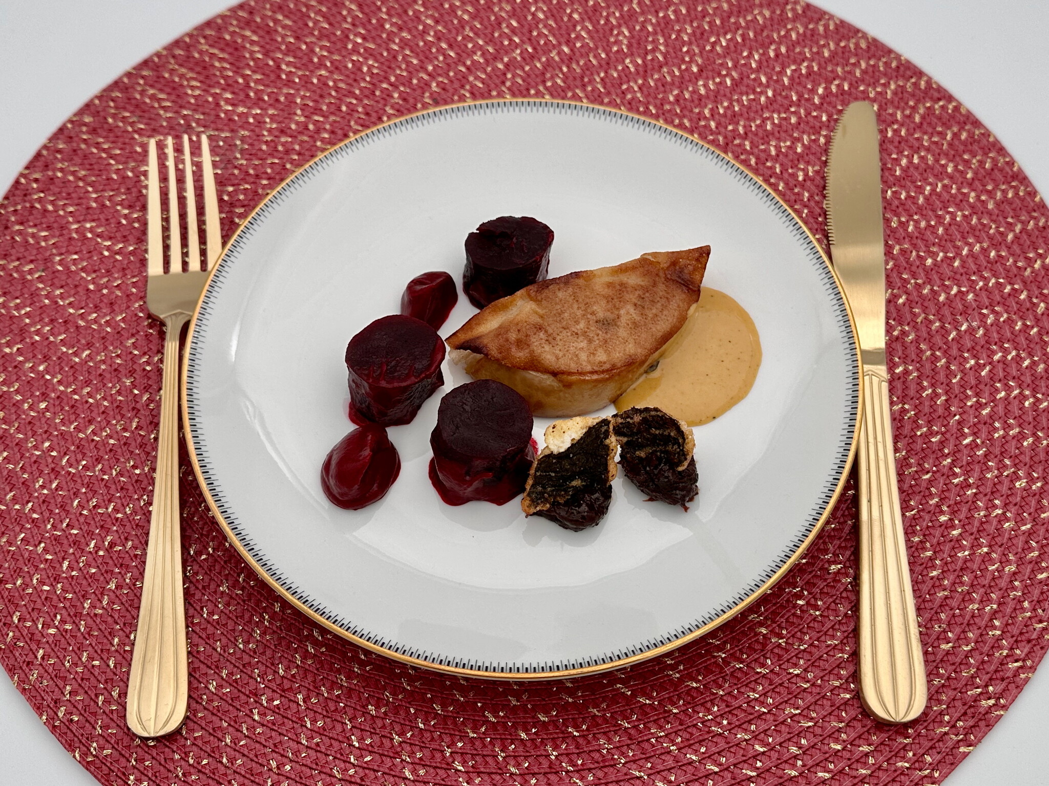 Biet & foie - barbabietole arrosto, eendenlever, pruim en Albuferasaus.