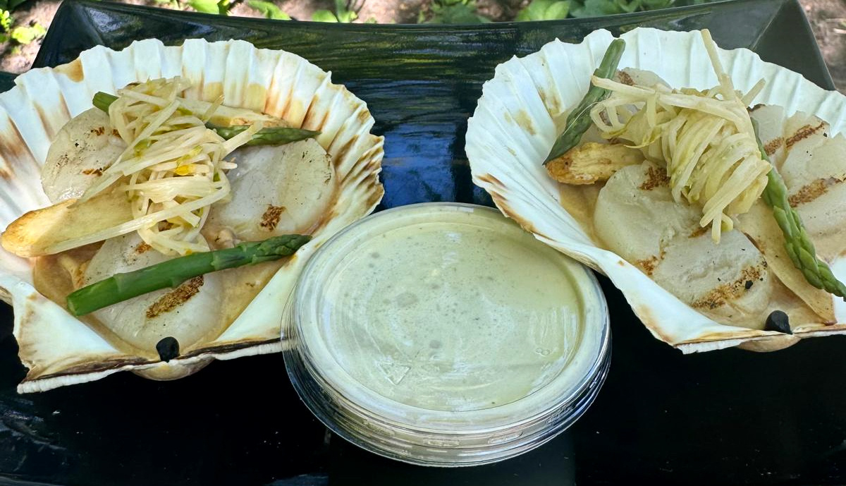 Coquille, aspergetips, aspergespruit, Nouilly-Prat saus