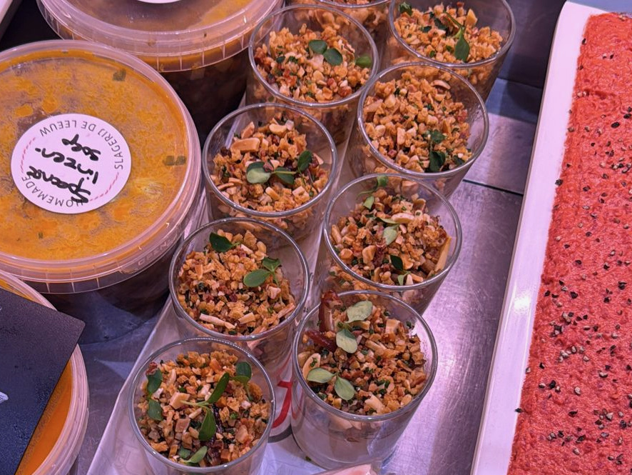 crumble van pancetta, dadel, amandel en knolselderij.