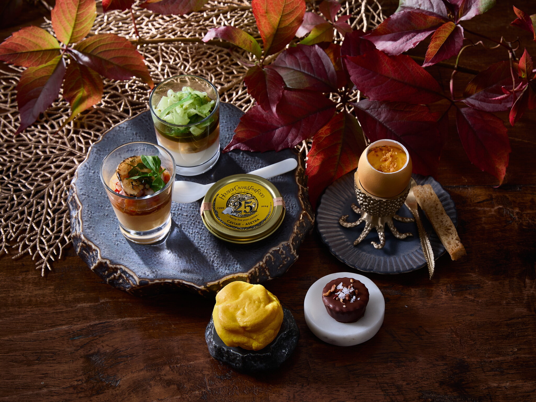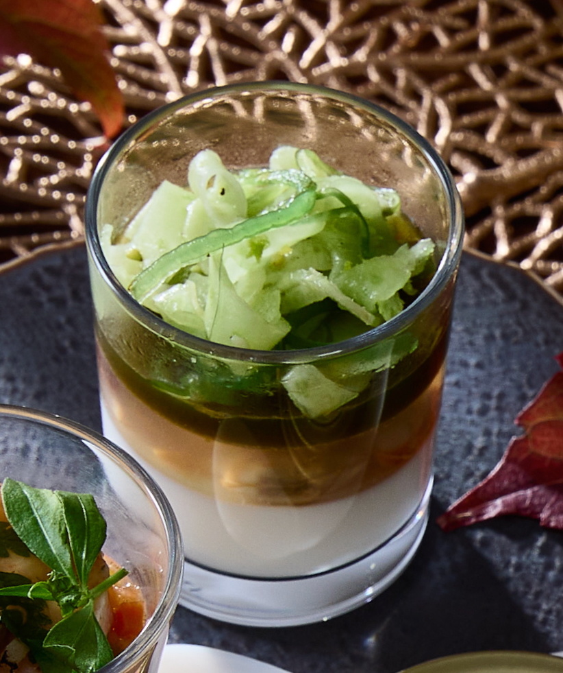 Glaasje met kokkels, pannacotta van karnemelk, dillegelei, zeewiersalade en venkel.