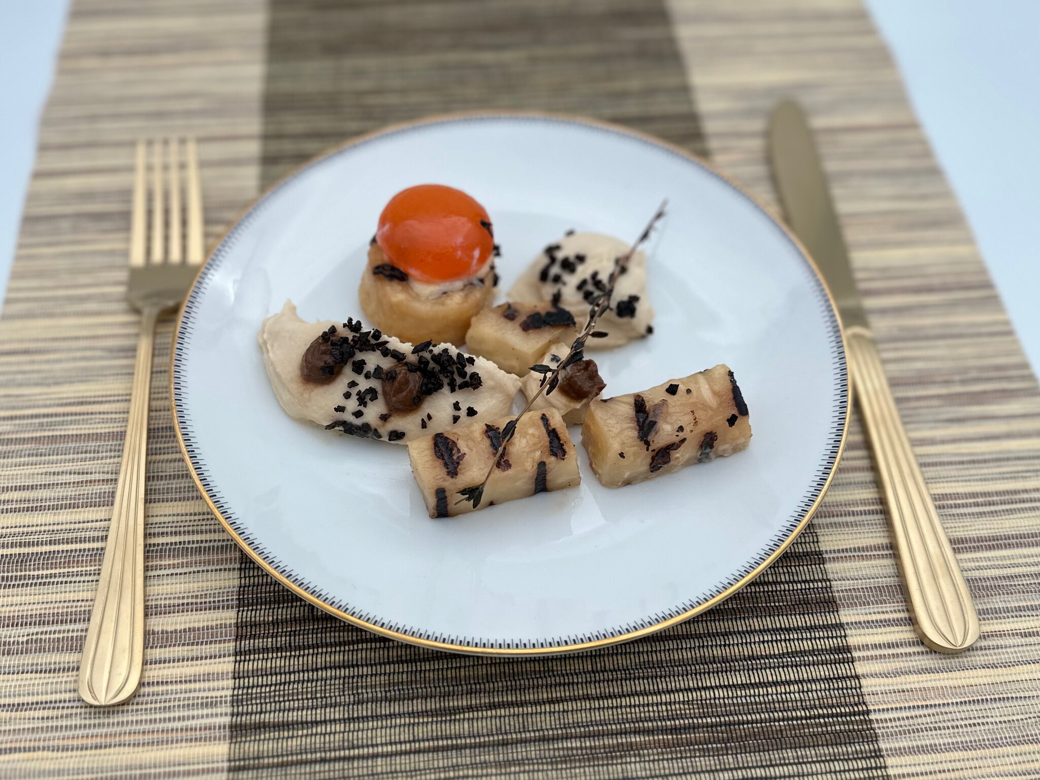 Knolselderij/eidooier/knoflook/truffel/hazelnoot/aceto