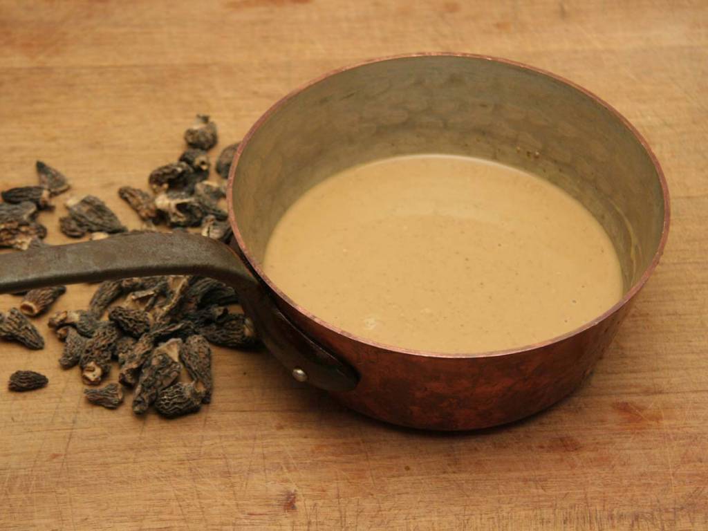 Sauce Diane, met kalfsfond, shiitake, cognac, mosterd, room en sjalot.