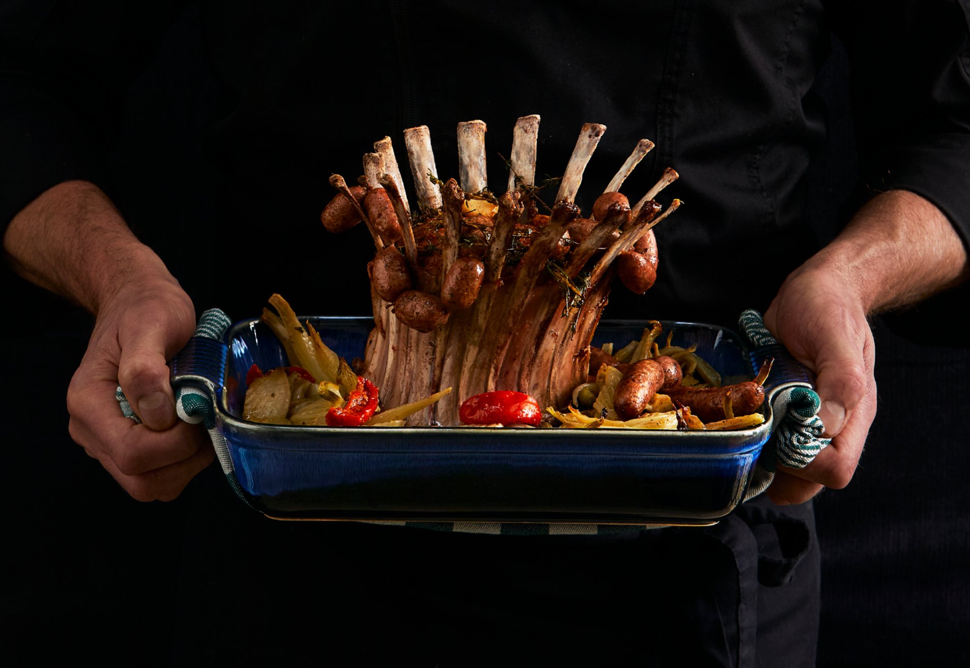 Spaanse zuiglamskroon, vakkundig opgebonden, inclusief lamsmerguezgehakt.